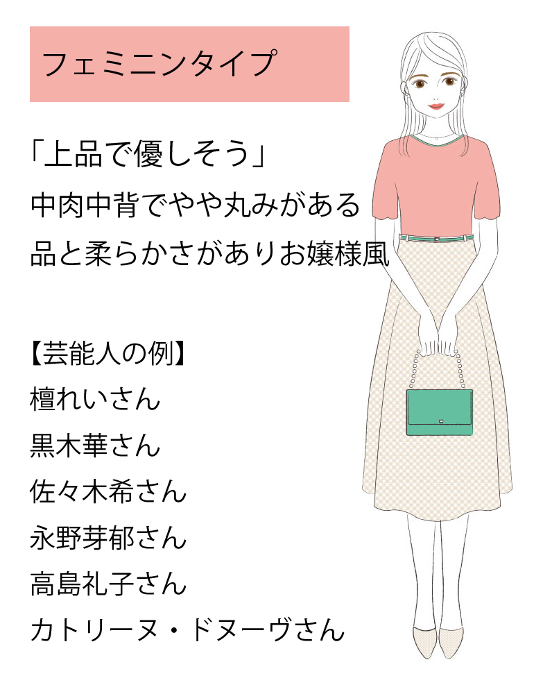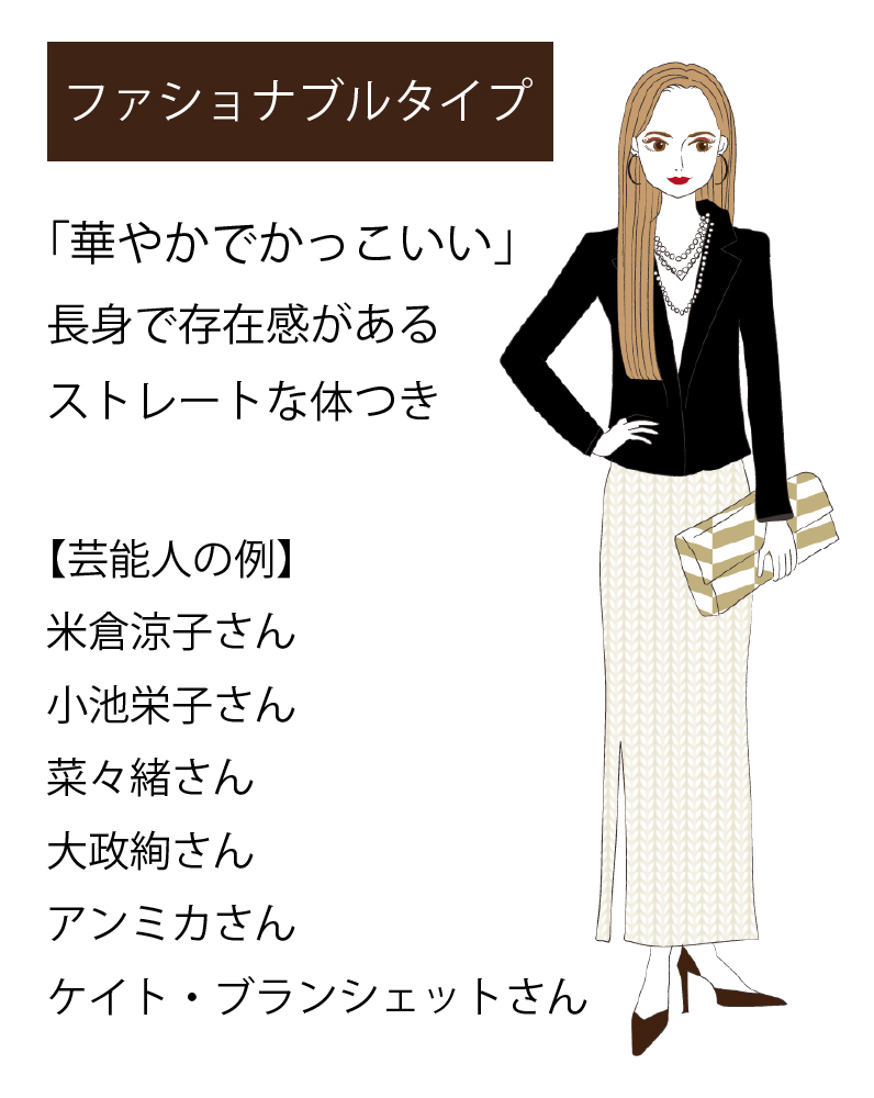 お顔立ち・お体付き・全体の雰囲気に自然に調和し、魅力的に見せてくれるファッションをが分かります。