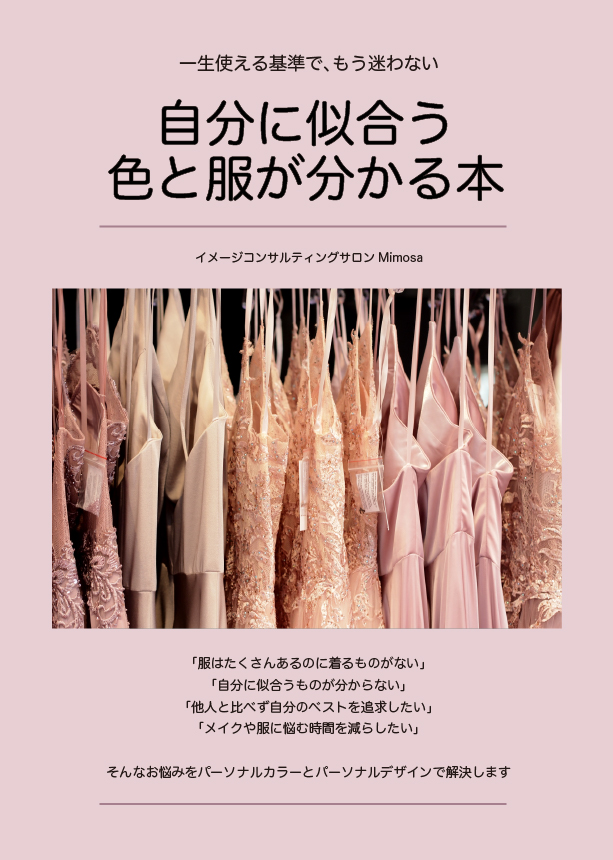 パーソナルカラー、パーソナルデザインの入門書を作りました。「服はたくさんあるのに着るものがない」「自分に似合うものが分からない」「メイクや服に悩む時間を減らしたい」「他人と比べず自分のベストを追求したい」 そんなお悩みをパーソナルカラーとパーソナルデザインで解決します。
