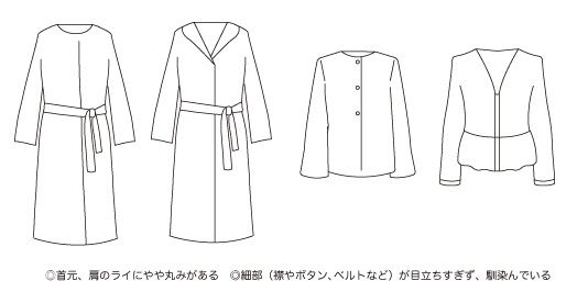 • 首元、肩のラインなどエッジにやや丸みがあるもの